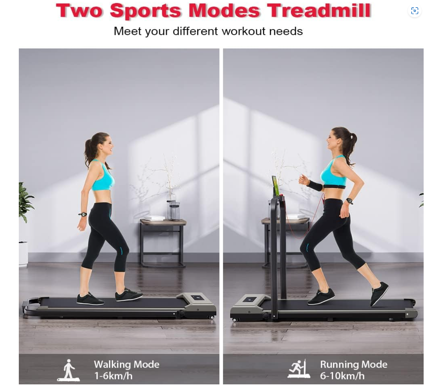 2 in 1 Design – This folding treadmill provides two exercise modes(Walking and Running Mode)and an adjustable speed of up to 10km/h to meet your preference. The armrest can be used as support while walking.