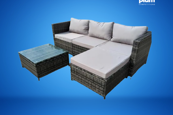 Garden Corner Sofa Rattan Furniture Set 4 Seater Patio Outdoor Lounge Settee with Glass Coffee Table All-weather