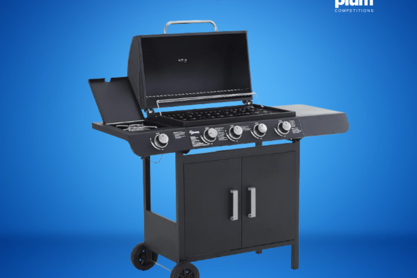 4+1 Burner Gas BBQ Grill, Outdoor Barbecue Trolley with Wheels